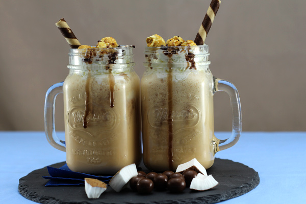 • 5 to 6 scoops of vanilla ice cream • 1 tot Nachtmuzik chocolate liqueur • 1 tot Coconut Lovoka liqueur • 125ml rooibos tea (cooled) • 1 to 2 pumps of chocolate sauce